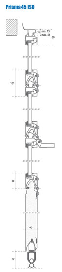 İç ve dış tarafta parmak sıkışma korumalıdır. Alt Panel yüksekliği 500mm veya 625mm olan bir Thermo 45 panelinden oluşmaktadır. Panelin iç ve dış yüzeyi 125 mm’lik aralıklı hadveler ile eşit bölümlere ayrılmıştır. Panel Yüzeyleri sıcak daldırma galvanizli çelik sac ve astar boyalıdır. Diğer kapı dilimleri alüminyum profilleri ve camdan oluşmaktadır. İstek üzerine dilimler eşit ölçülerde imal edilir.