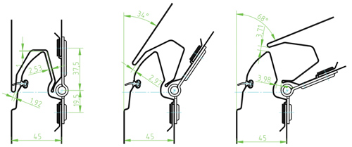 Parmak sıkışma emniyet standardı max. 4mm’dir. Şekildeki kesitte görüldüğü gibi Thermo 45 ve Prisma 45 panellerde iki panel arası açıklık en fazla 3.71mm olmaktadır.
